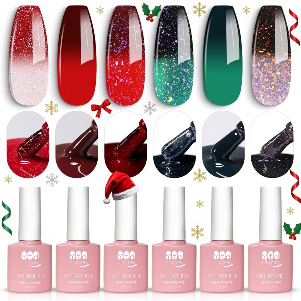 YTD Likomey Color Changing Gel Nail Polish Set โ Christmas 6 Colors
